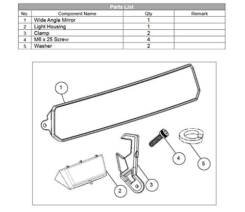 3D curved safety glass provides increased field of view Push button, removable LED light under mirror offers additional in-cabin light Textured black powder coating Cast aluminum mounting works with 38.1mm (1 ") to 45mm (1 7/8") diameter tubes 445.8mm (18") L x 78.7mm (3 1/10") H FITMENT : 2020 KAWASAKI TERYX KRX 1000