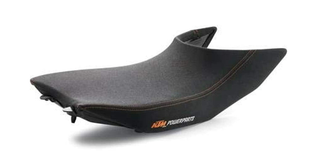 KTM's research and developed dept took the stock seat and once again made it better. It's optimized shape provides a rider compartment with a profile that's slimmer in the front for better bike handling and a more secure contact patch between your knees and tank. This eliminates any possible design flaws in the stock seat which may not allow you close enough to the tank to get a good grip with your knees. Toss in better foam and a inbuilt tunnel form that provides even pressure distribution.