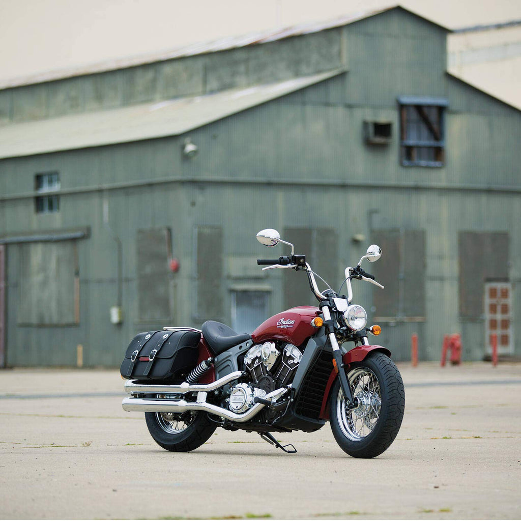 These authentic leather saddlebags offer practical and flexible storage for your Indian® Scout®. Designed with a roomy polymer interior wrapped in vinyl, they maintain their shape while providing easy access to the entire cargo space. The interior is protected by a sleek, weather-resistant premium leather lid and straps, enhancing the overall aesthetic and complementing the seat's design.