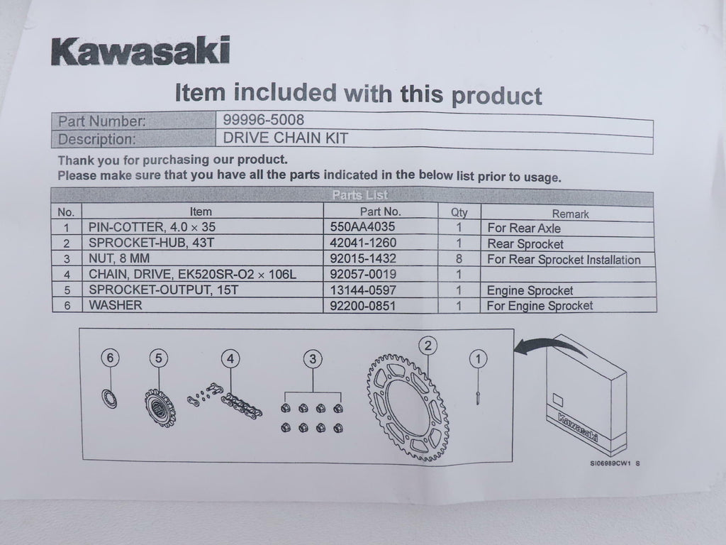 - This package from Kawasaki contains genuine parts required for correct drive chain replacement