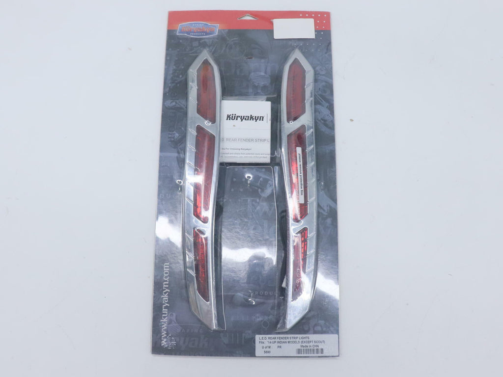 Increased rear light output and elegant styling are just two of the attention-getting features packed into the new L.E.D. Rear Fender Strip Lights from Kuryakyn. Designed for 14-16 Indian Motorcycle models (except Scouts), these accents provide additional run-brake lighting to enhance the motorcycles visibility from behind.