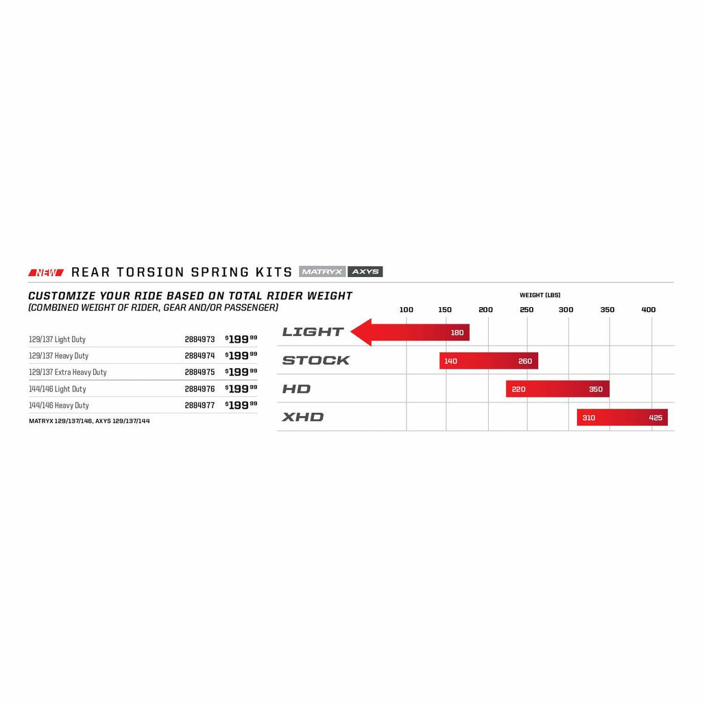 - Fits: ALL MATRYX/AXYS 129 AND 137 SNOWMOBILES