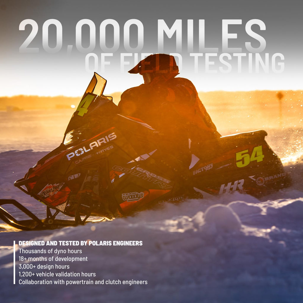 - [EXTENSIVE TESTING] Polaris Belts receive 20,000 miles of field testing, thousands of dyno hours, 18+ months of development (3,000+ design hours) per CVT belt, 1200+ vehicle validation hours, and collaboration with powertrain and clutch engineers.